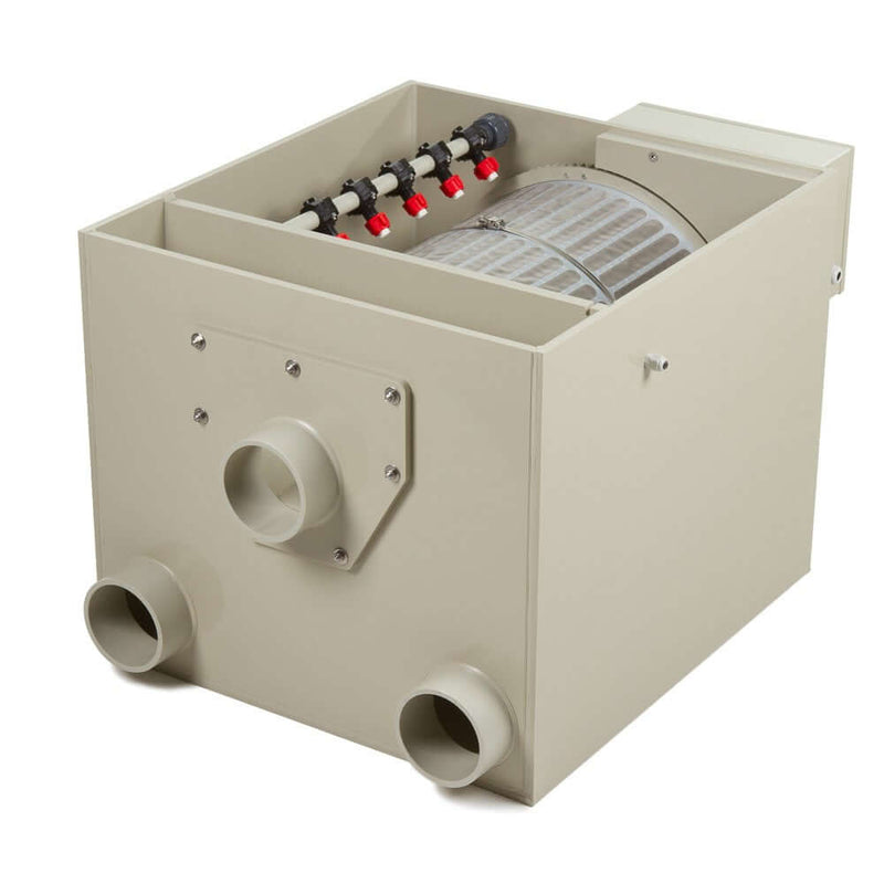 75–120 micron stainless steel drum with automatic rinse and internal booster pump