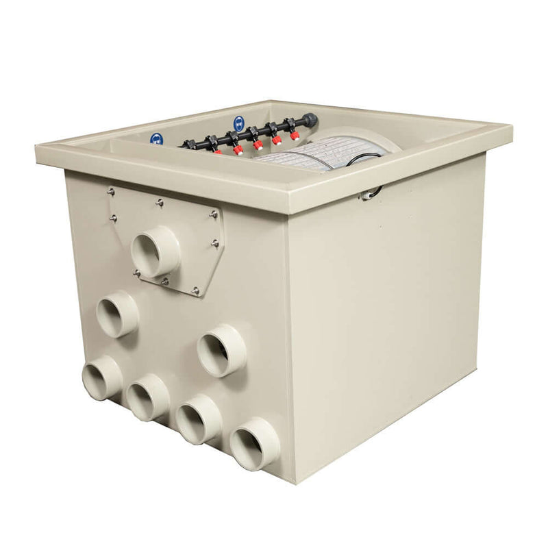 The Sea Side Aquatics C‑65M RDF Combi Filter is a professional-grade all-in-one filtration system built for large koi ponds and aquaculture systems. It features a 75–120 micron stainless steel rotary drum filter for precision solid removal, paired with a powerful biological section that includes both a moving bed and a mat chamber. This advanced design ensures clean, oxygen-rich water with minimal maintenance—even in high bio-load environments.