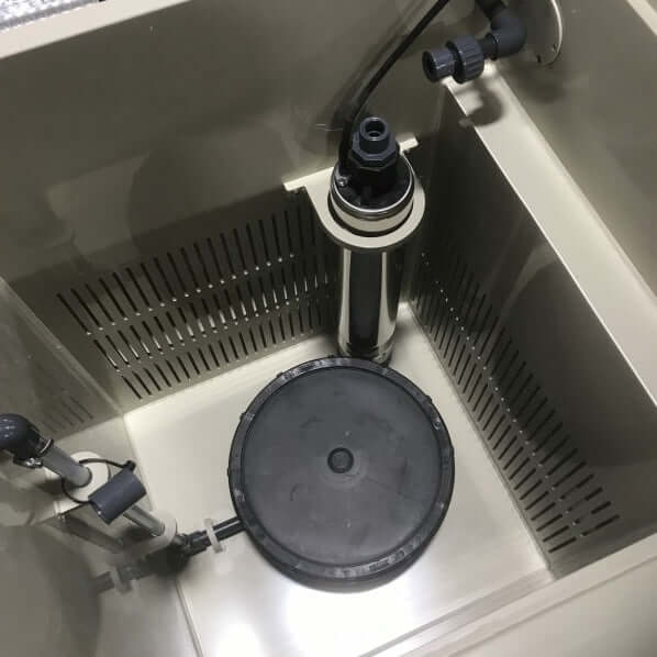 Built-in 90-liter bio chamber with Helix-style media and dual air diffusers